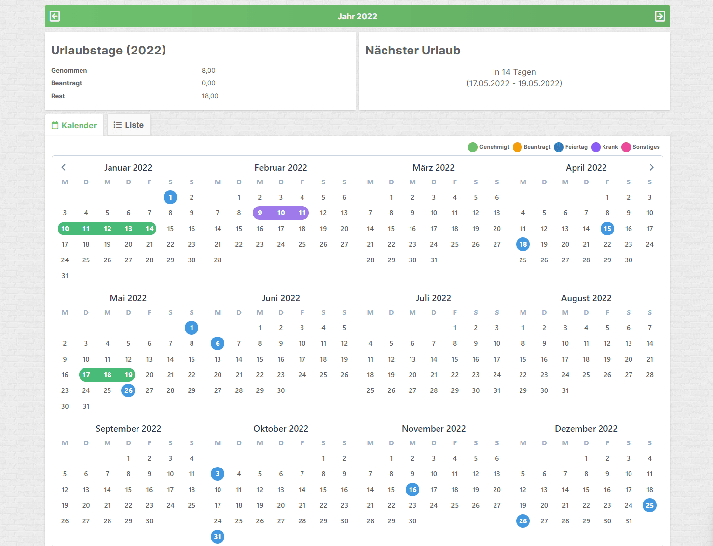 Die Urlaubs- und Abwesenheitsverwaltung ist nun in SpikeTime enthalten. Damit können Urlaube, Krankheiten und sonstige Abwesenheiten digital verwaltet und übersichtlich dargestellt werden.